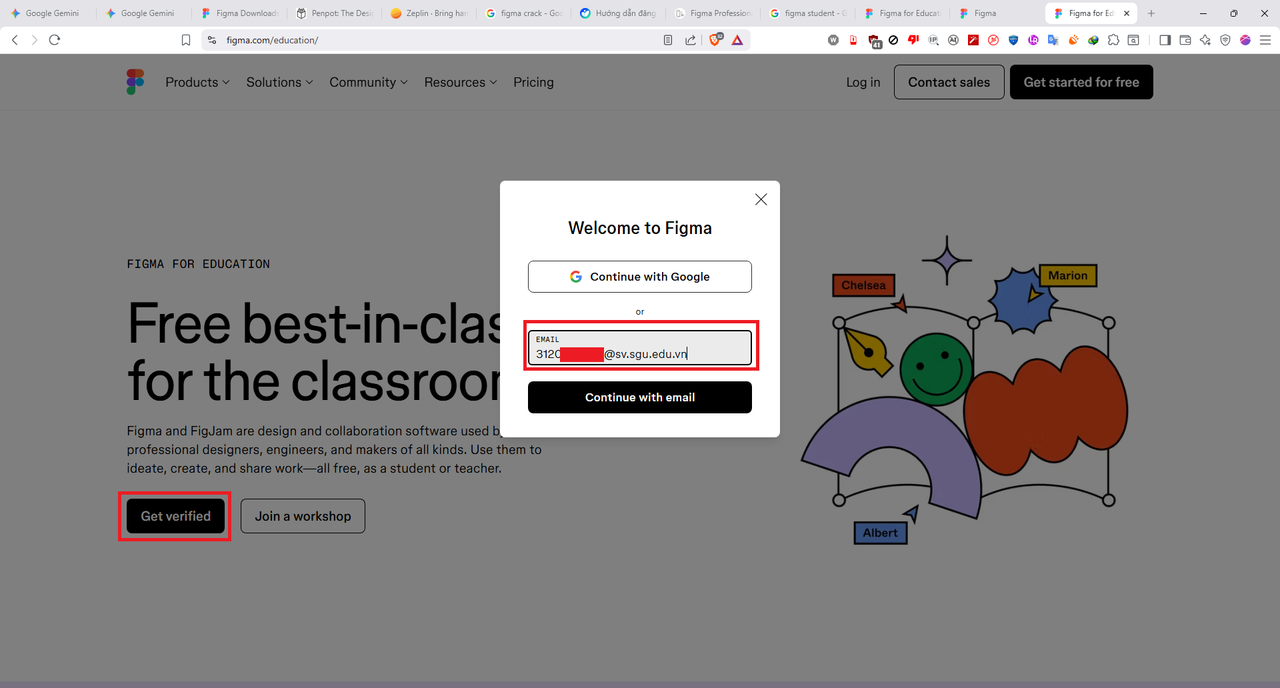 Truy cập vào đường link https://www.figma.com/education/