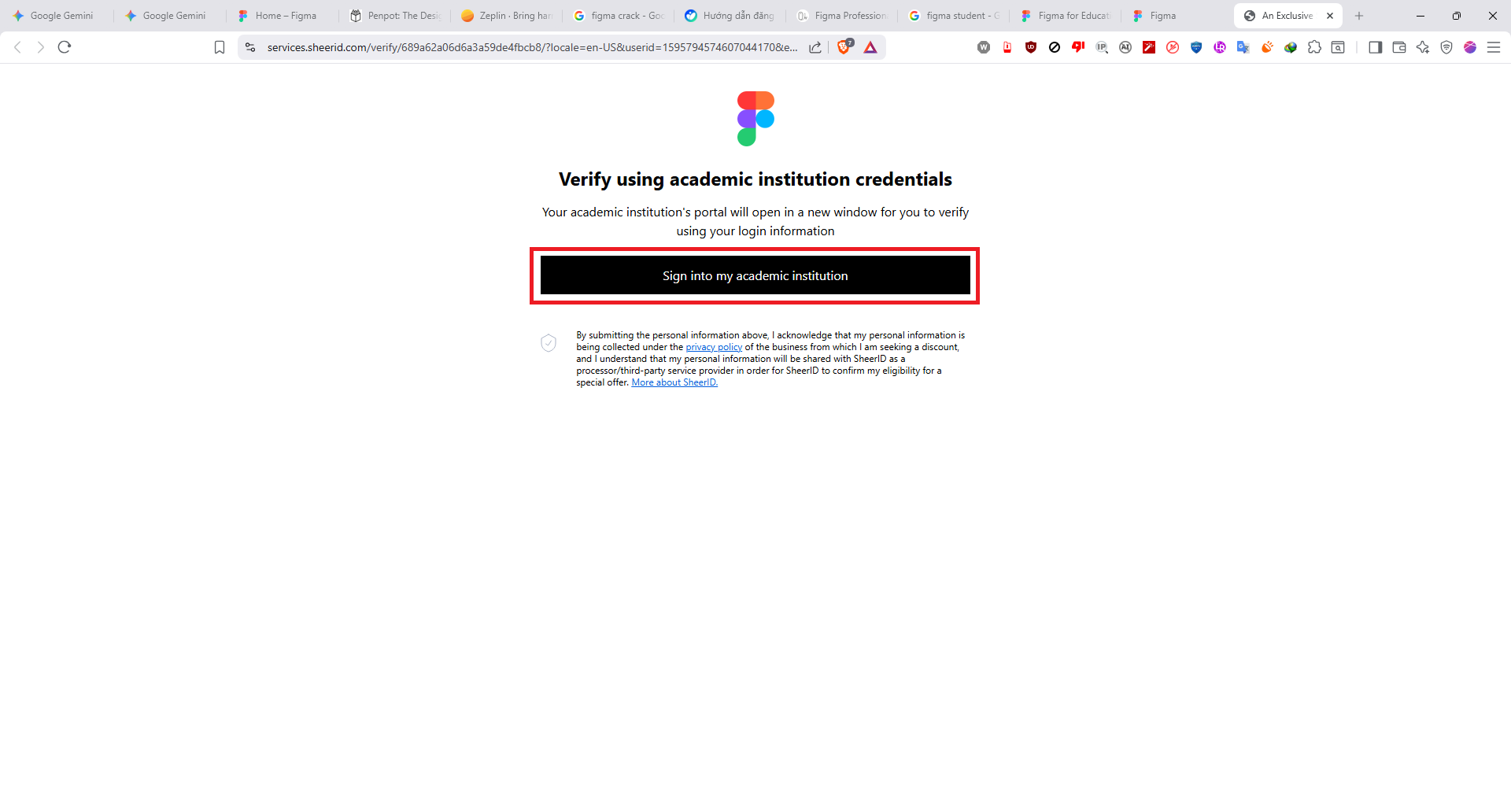 - Lúc này Figma sẽ yêu cầu bạn Upload hình ảnh minh chứng. Các bạn nên Upload hình ảnh như Thời khóa biểu dạng học kỳ và Thông tin cá nhân sinh viên ở trang thông tin đào tạo. Thẻ sinh viên của mình đã hết hạn từ tháng 03/2025, nay là T1/2026 nên không thể dùng thẻ sinh viên. Các bạn nên chụp rõ không che, không bóng mờ, và có kèm logo trường ĐH để SheerID nhận dạng. Ở đây mình xuất bản lên web nên che để bảo vệ thông tin cá nhân.