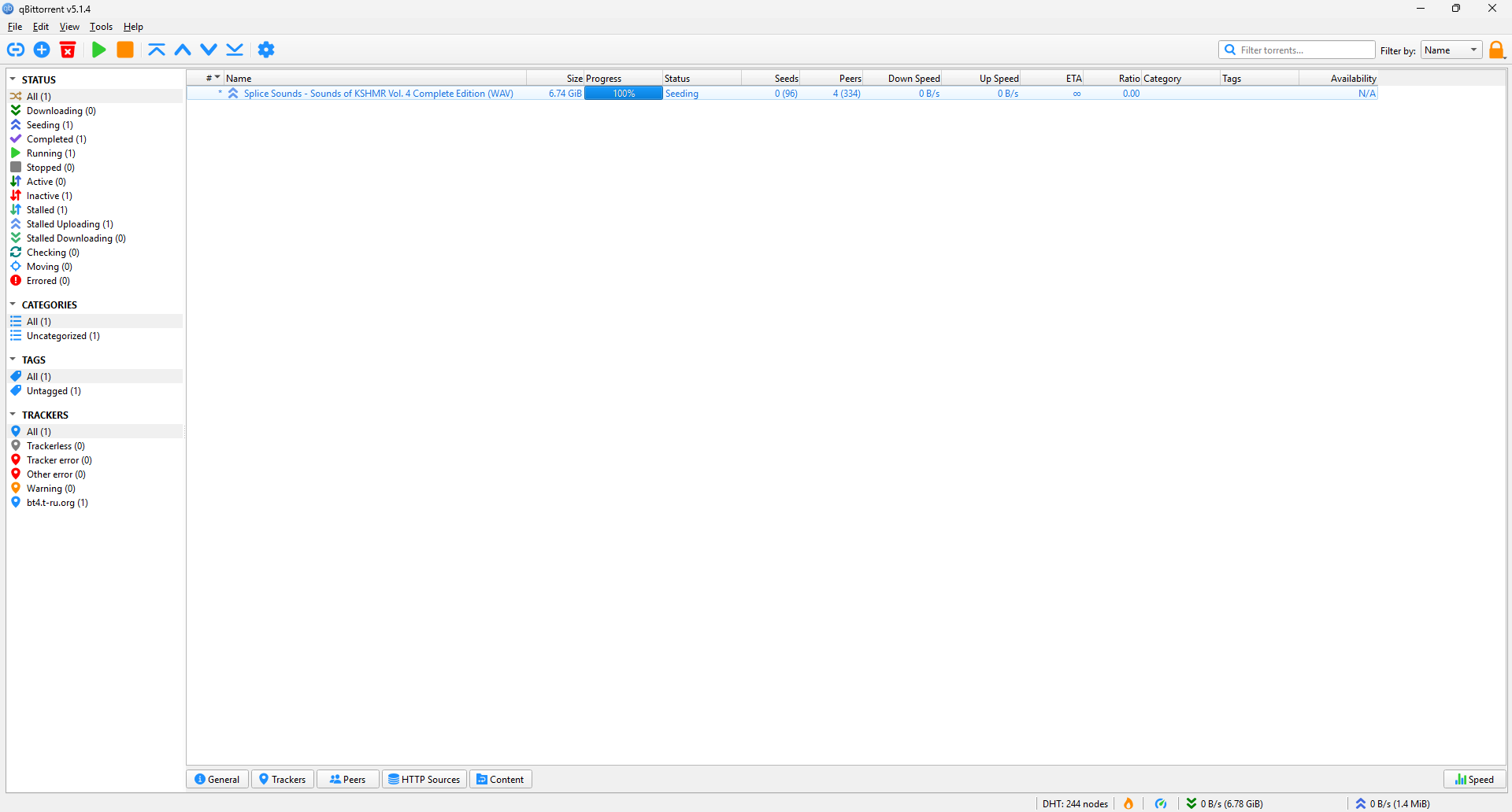 Seeding: Shows files that are 100% complete and are currently “turned on” to share with others. Use this to manage your upload bandwidth. If your internet is slow, check this list to pause torrents that are uploading too aggressively.